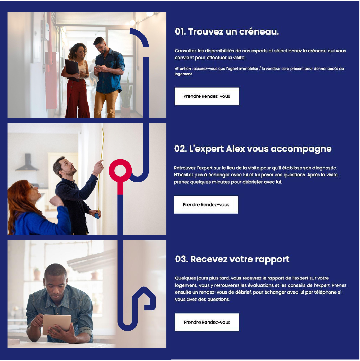J’ai conçu les premiers éléments web pour lancer la landing page du service Alex. L’objectif était de traduire la promesse de simplicité et de fiabilité : un parcours clair où les clients sont accompagnés de bout en bout, grâce à des outils intuitifs et à l’expertise d’équipes dédiées.