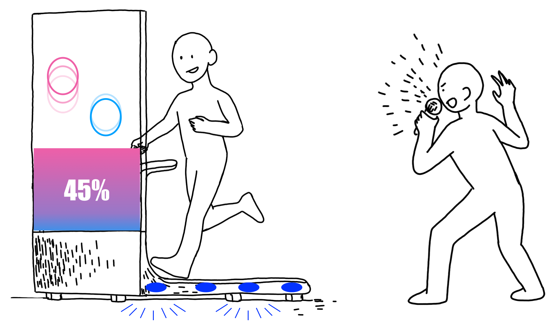 Cette démarche créative a donné naissance à deux expériences interactives sur tapis roulant.