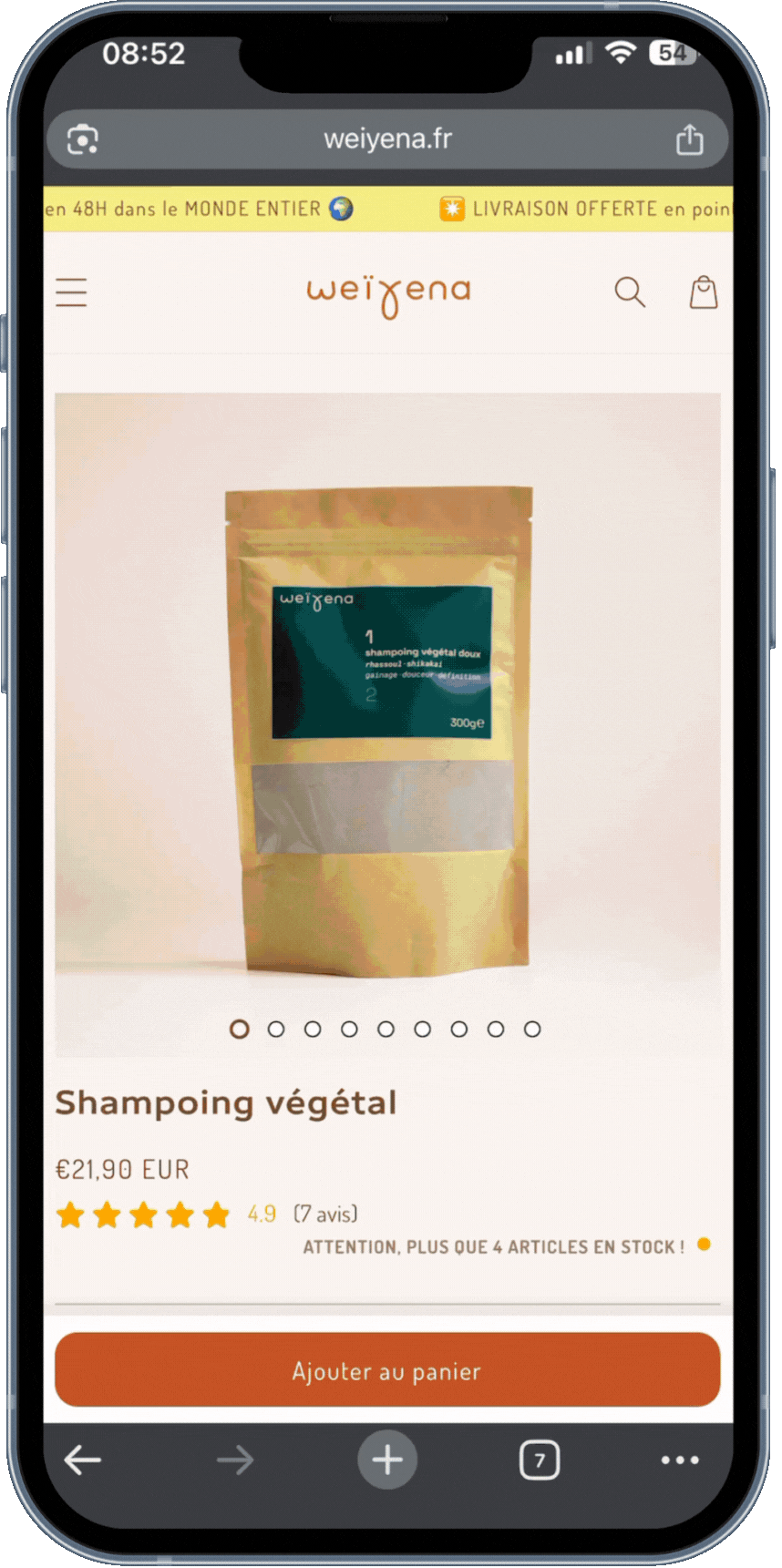 Avec Weïyena.fr, j’ai imaginé un site e-commerce où se déploie la vision de la marque : rendre le soin des cheveux afros simple, clair et accessible.