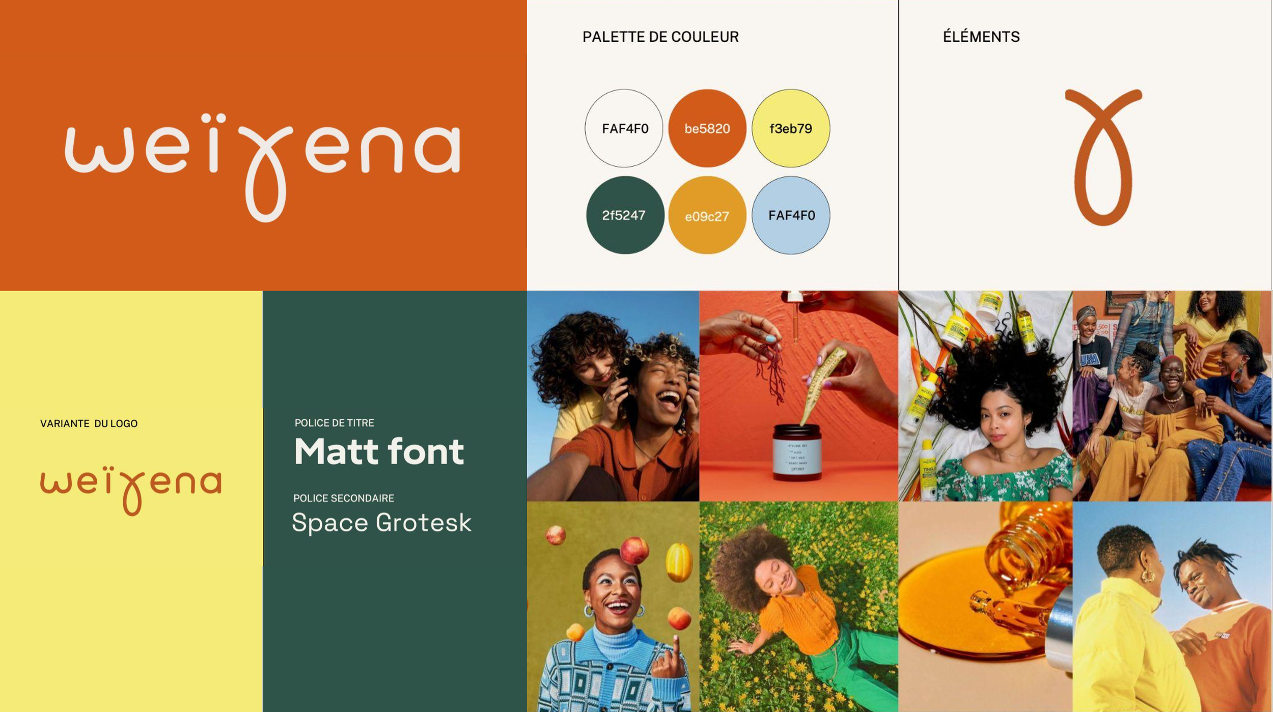 Les couleurs et l’ambiance de Weïyena reflètent ses valeurs fondamentales : authenticité, simplicité, transmission, et empowerment. Ces choix visuels créent un univers chaleureux et confiant, ancré dans la célébration de la beauté afro et de ses racines.